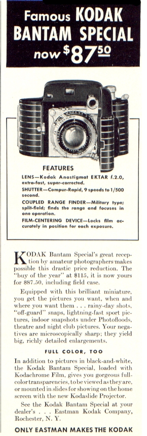Kodak Bantam Special was quite an expensive camera to buy - an advert for
