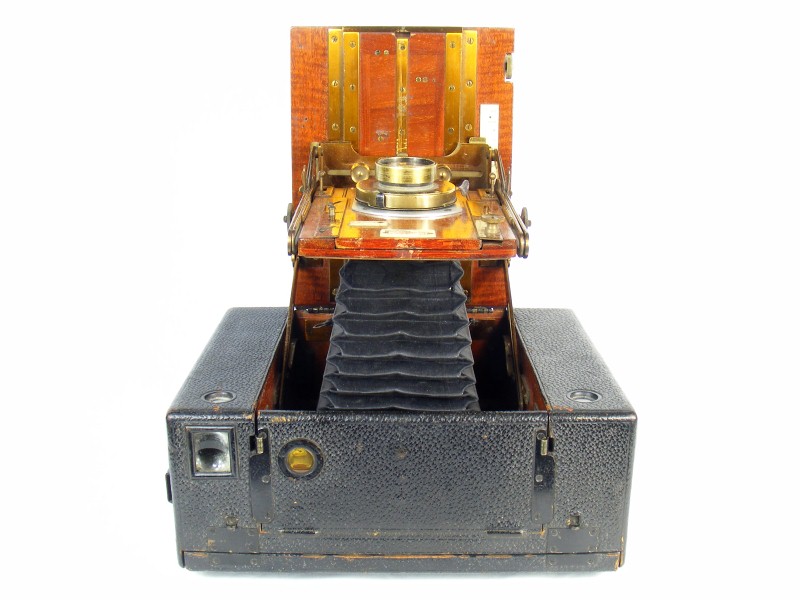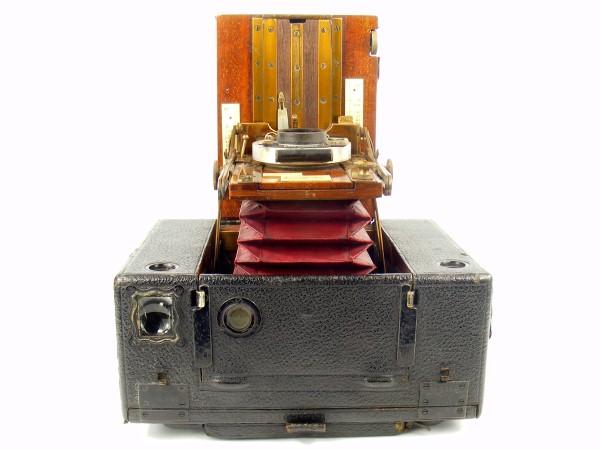 This example is fitted with the plain back, and in this form could only be used with rollfilm rather than being adaptable to plates. Compare the back with that of the previous example.